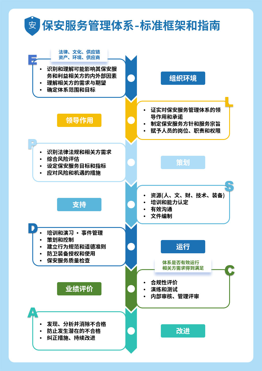 國(guó)家標(biāo)準(zhǔn)GB/T 42765《保安服務(wù)管理體系 要求及使用指南》于2023年11月27日發(fā)布,2024年6月1日實(shí)施。標(biāo)準(zhǔn)提出了保安服務(wù)管理體系的基本要求,提供了風(fēng)險(xiǎn)管理的框架,有助于從事保安服務(wù)業(yè)務(wù)的組織持續(xù)提升保安服務(wù)能力。